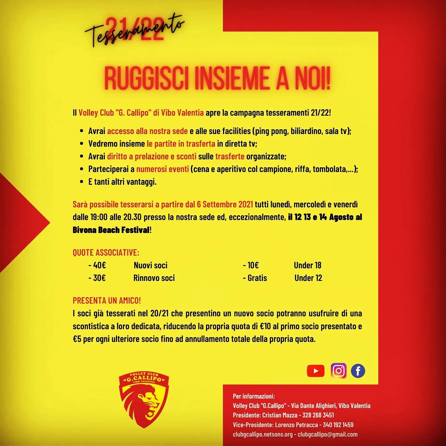 Inizierà il 6 settembre la campagna tesseramenti per la stagione 2021-2022 che, COVID permettendo, ci vedrà ripartire più motivati che mai!